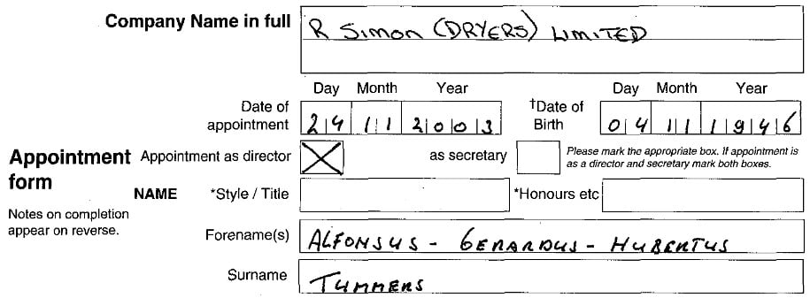 Owner and director of Tummers group; Alfons Tummers appointed as Director of Simon Dryers Ltd.